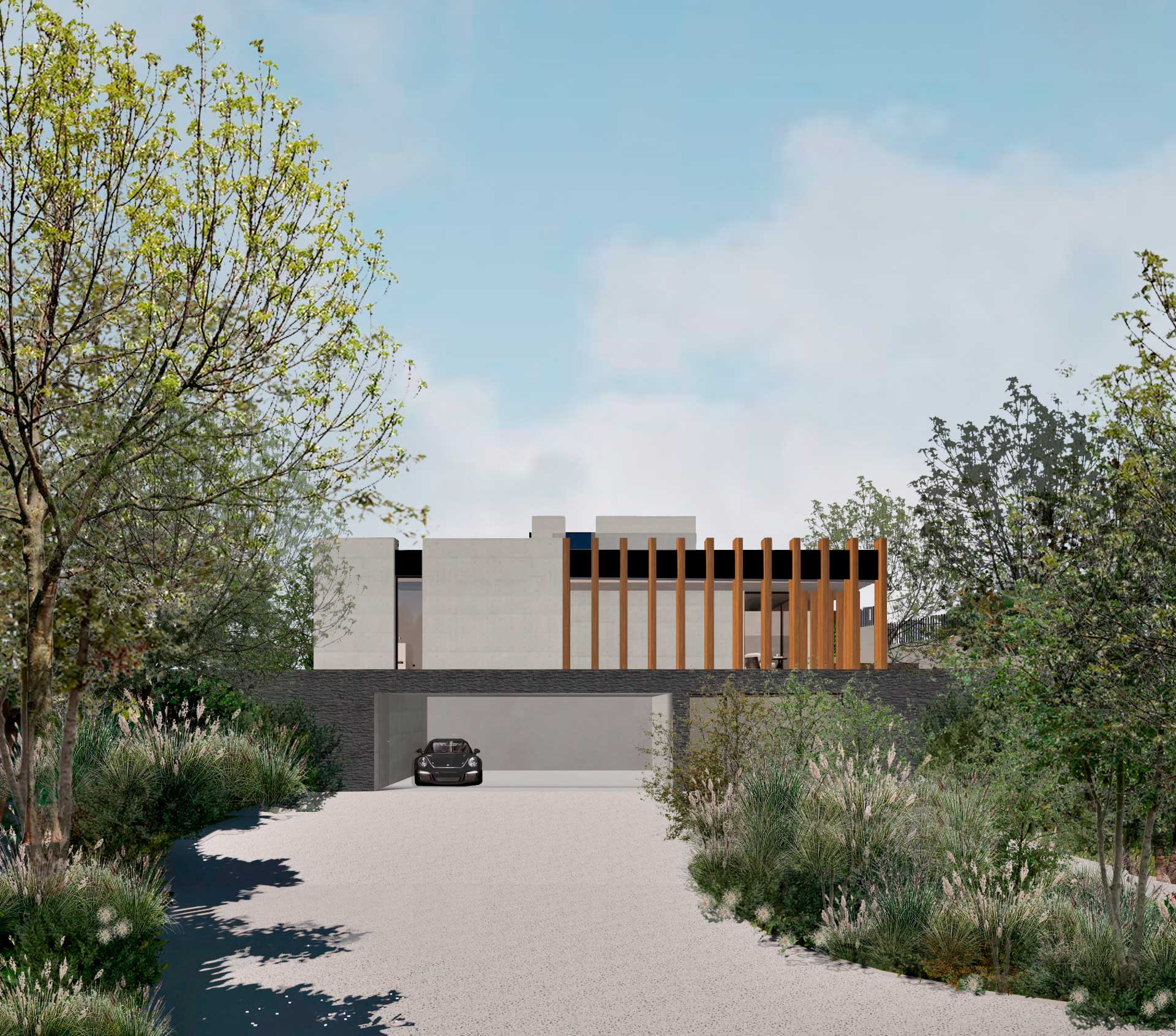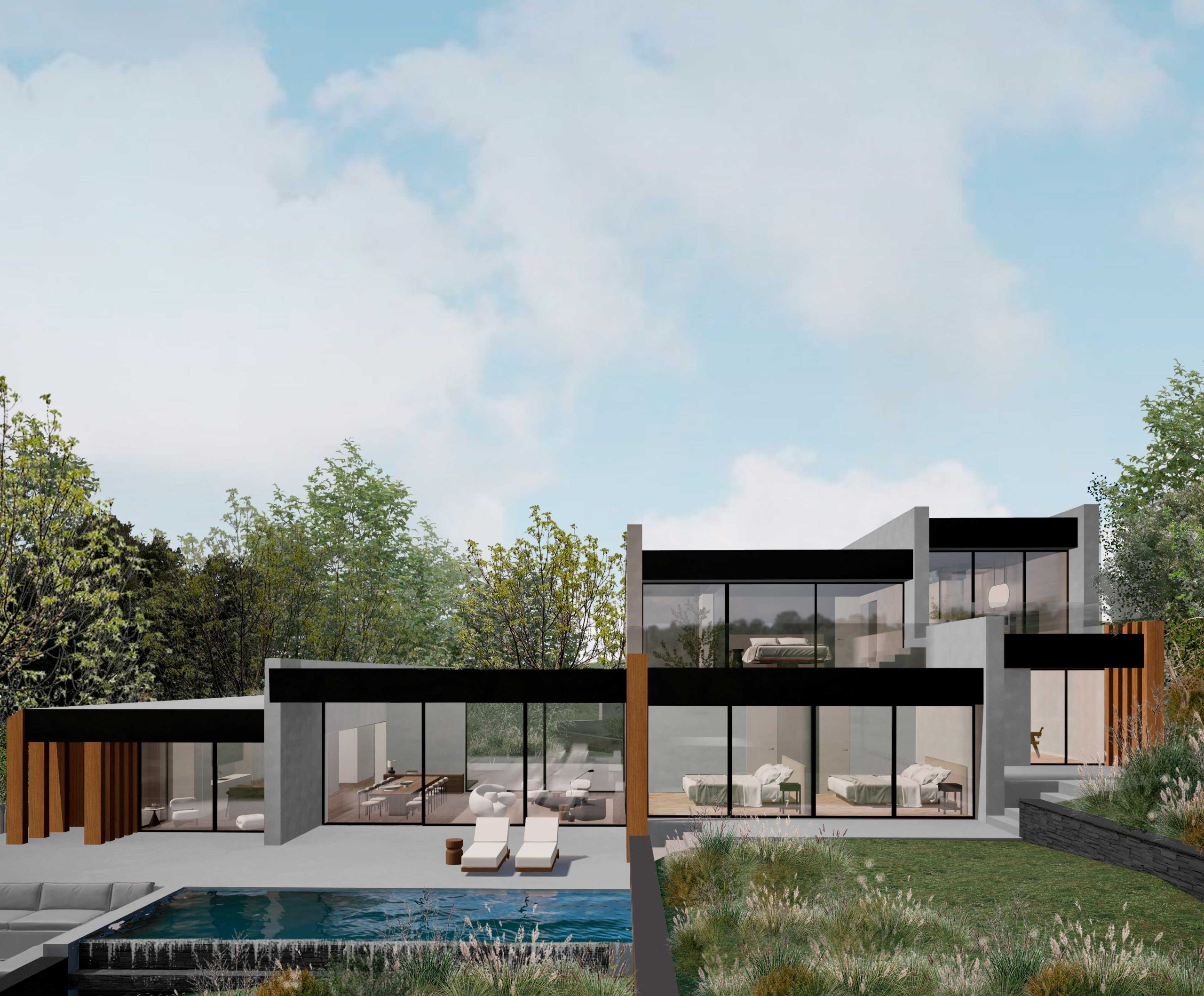 Se propuso un nuevo concepto en el que manteníamos las cuatro pastillas, anteriormente coronadas por cubierta inclinada, pero ahora organizadas por costillas, que marcaban esta secuencia de volúmenes y actuaban de bancales, generando una nueva sección más interesante que responde al desnivel del terreno existente y nos ayuda a organizar la privacidad de la misma.